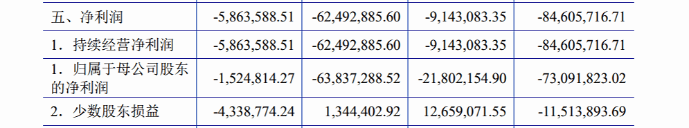 然而,在扣除各项成本后,归属于母公司股东净利润分别为-152.48万元、-6383.28万元、-2180.21万元、-7309.18万元,三年亏掉约1.6亿元!