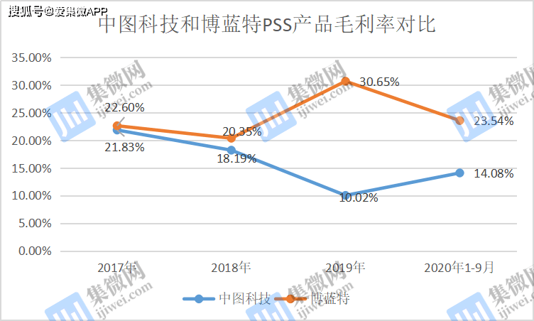 相对而言,同样以PSS业务为主的博蓝特的毛利率明显高于中图科技,在上述时间内,博蓝特的毛利率分别为22.60%、20.35%、30.65%、23.54%,均高于中图科技,尤其是2019年更是远远高于中图科技。