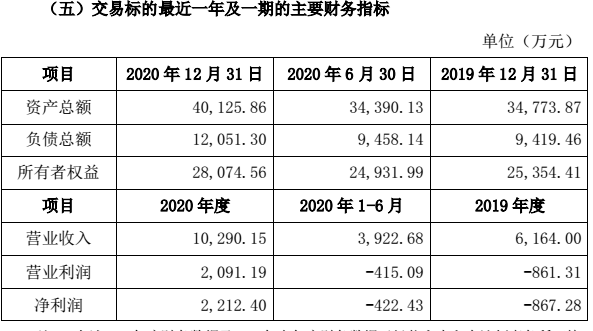 关注函指出,北方广微2020年上半年营业收入和净利润分别3922.68万元和-422.43万元,2020年未经审计的营业收入和净利润分别为10290.15万元和2212.40万元。北方广微在北京产权交易所披露的产权转让公告显示,北方广微截至2020年10月31日未经审计的营业收入和净利润分别为2894.28万元和-3107.42万元。而评估报告显示北方广微2020年下半年营业收入和净利润分别为6433万元和723.16万元,评估报告落款日期为2020年10月14日。