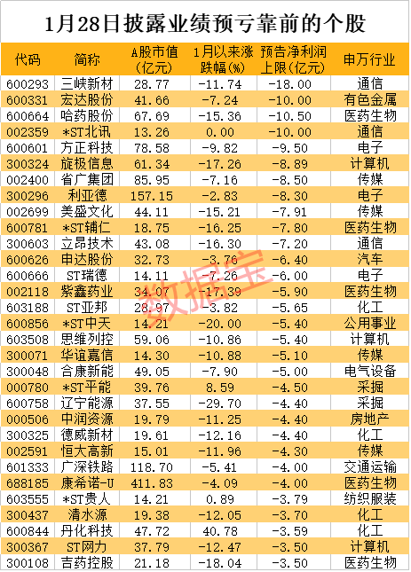 昨晚共有超70家公司业绩预亏,超300万户股东一夜难眠。