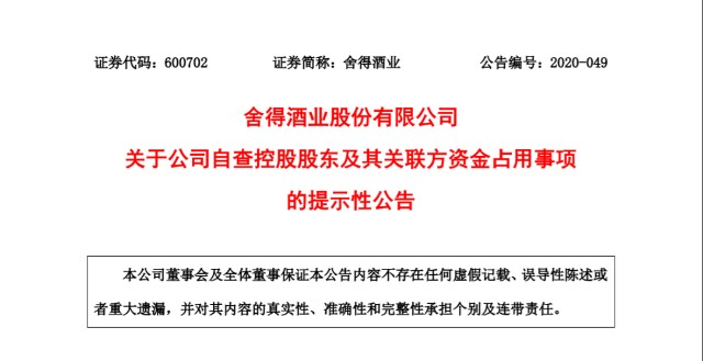 2018、2019年舍得酒业年报中都称不存在被控股股东及其关联方非经营性占用资金情况。