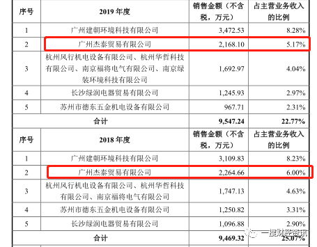 我们《一搜财经》还发现,2017年-2020年上半年,广州杰泰贸易有限公司都是绿岛风的第二大客户。销售额分别为1,536.97万元、2,264.66万元、2,168.10万元、802.06万元。占主营收入比例分别为5.29%、6.00%、5.17%、4.93%。