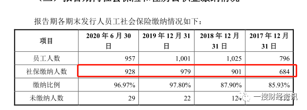 招股书显示,2017年至2019年,绿岛风员工人数分别为796人、1,025人、1,001人,同期社保缴纳人数分别为684人、901人、979人。而工商年报信息显示,绿岛风在2017年至2019年的社保缴纳人数分别为694人、907人、991人,竟然比招股书分别多出了10人、6人、12人。